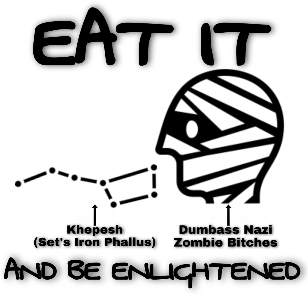 Também não precisamos realmente do material de Lovecraft (exceto como entretenimento, é claro). A tradição kemética já está repleta de universos alternativos, monstros qliphóticos e geometria sagrada. De fato, Khepesh (a Ursa Maior, sagrada para Set) pode até ser chamada de “trapezoidal”, na medida em que é uma forma angular estranha que representa algo assustador (o poder deicida furioso de Set) sendo usado de forma positiva (afastando Apep, que tenta entrar sorrateiramente no mundo material pelo céu do norte). Além disso, há o fato de que os cinzéis para Abrir a Boca dos mortos foram modelados com base nesse mesmo símbolo “trapezoidal”, o que nos leva de volta à ideia de nos tornarmos Seres Imperecíveis e nos atiçarmos com Sutekh lá no deserto. Está vendo como fiz tudo isso sem incluir nenhum deus nórdico, nazista ou besta cthulhiana? Não tenho mais nada a dizer.
