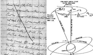 A obliquidade da Terra flutua de um ângulo que varia de 22 a 25 graus. A linha no Livro da Lei, em seu ponto mais consistentemente reto, nos dá um ângulo de cerca de 23,2 graus, bem dentro do domínio do ângulo do Eixo da Terra. Este é precisamente o ângulo que determina nossa estrela do norte e dá importância às estrelas circumpolares. Quando olhamos para a linha comparada com a terra (a cruz do sol) ela nos aponta diretamente para o reino de Set, filho de Nuit.